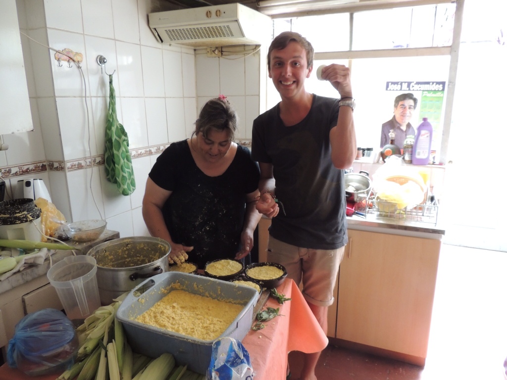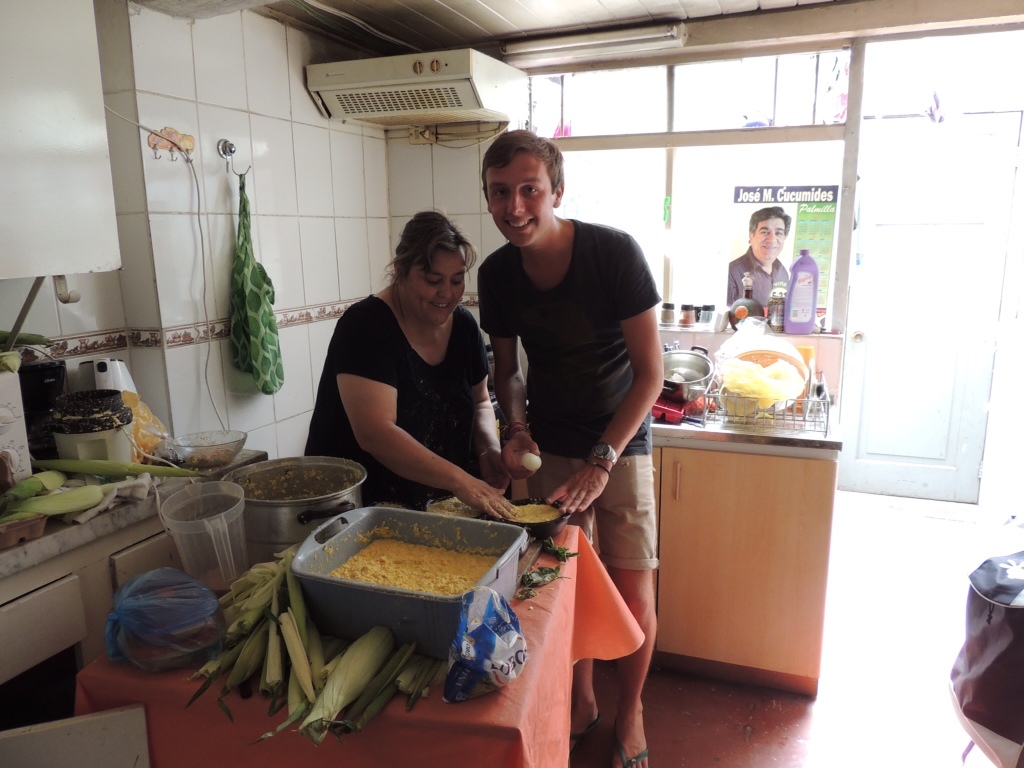 I took the metro to Principe de Gales on Saturday afternoon and walked across to Tania's house. It is reminiscent of any inner-city, suburban terraced home in that every ounce of space is used – even the roof – and makes for a cosy three bedroom family home. Upon arrival I met Tania's mother in the kitchen surrounded by the most sweetcorn I have ever seen in my life. One thing I love about South American home cooking is that the rule seems to be to make as much mess as is physically possible and simply clean it up later after everybody has eaten. Believe me, there was corn everywhere.