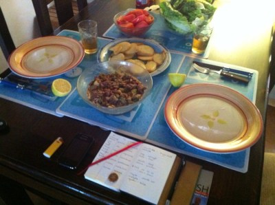 Tania's mother was making Pastel de Choclo and Humitas, both maize-based, South American dishes. I helped her prepare the Pastel de Choclo, which consists of mashed corn, half a boiled egg, one olive, minced beef and a piece of chicken, baked in a clay dish. I left the Humitas to the expert, which is mashed corn wrapped in small corn leaf parcels, which are then boiled and eaten with diced tomato and sugar. Lunch was a delicious cacophony of Spanish, as I constantly strained to pick up any familiar words from the conversation across the dinner table. Sebastian plied me with beer which, oddly enough, seemed to help.