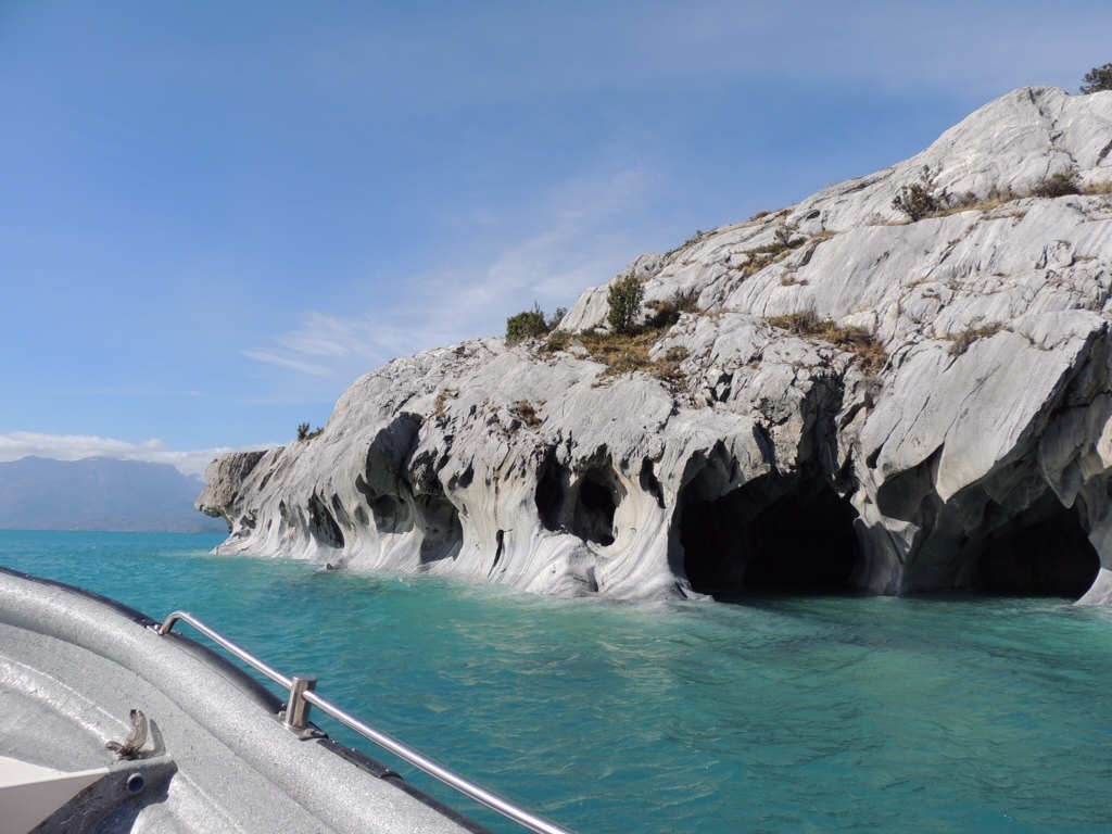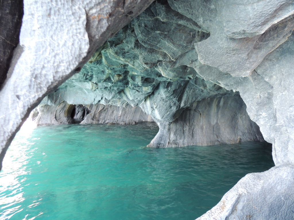 Upon arrival in Rio Tranquilo I thanked my driver and walked over to the small cafe on the main street, where I found my two new amigos plus one more, a Chileno guy called Daniel. We settled on a hostal together, cooked dinner and drank wine as our hosts cheered madly for the Chilean football team World Cup Qualification match. We planned to visit the famous Las Cavernas de Marmol the next day which are touted as some of Patagonia's most incredible attractions. The crystal clear azul waters of Lago General Carrera have sculpted the marble caves over millions of years, creating an impressive array of caverns and patterns on the limestone peninsula.
