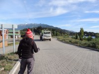 The next 190km took over three hours. As the road seriously deteriorated, the scenery became increasingly beautiful as we climbed steep mountainsides looking down to the lake below. Rainbows stretched the width of the lake, the low mist making perfect conditions to filter the Patagonian sun. The girl and I compared Spanish and Australian hip-hop music using our iPods – I think Illy has a new Chilean fan. Two hours into the ride, a pickup truck packed with sheep screamed past us honking its horn and Olivier and Deborah smiled and waved from the back seat. They had caught a ride and were back in front!