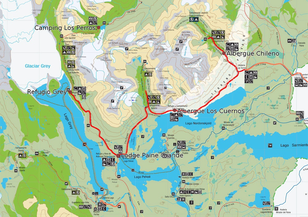 We planned to do the ‘W’ trek, named for the way in which the trail zig-zags across the national park. It is less strenuous than the full circuit (known as the ‘O’) but still offers some of the best sights the park has to offer. After sorting our gear at Erratic Rock we headed to the supermarket to stock up on supplies. Carrying all of your food and cooking equipment doesn’t offer much room for variety, our staple diet for the next few days would be: Oatmeal with powdered milk and raisins, coffee, apples, rice, rice, rice and some rice – just to be different. Sam, a self-confessed chocoholic, eyed off several options before settling on just under a kilogram of the good stuff. We parted ways and agreed to meet on the bus to the park the following morning.