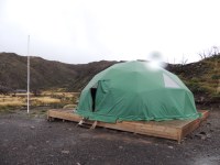 Then the inevitable happened. After 2 months and 2000km, countless nights pitched along the Carretera Austral and many days strapped to my pack, Patagonia claimed another victim: my tent. The feeble poles succumbed to the intense winds and gave way, snapping in several places. Luckily, we were able to retrieve our things and take them inside. Unfortunately, we were now also homeless, along with an Australian couple who had owned the yellow tent. Despite putting on my most lovable face and some begging in broken Spanish, we were not allowed to sleep in the kitchen. Instead, we stayed in the huge Doma Verde, a makeshift office tent used by the park rangers during the day. The novelty soon wore off as the gigantic, doorless dome left us shivering throughout the night.