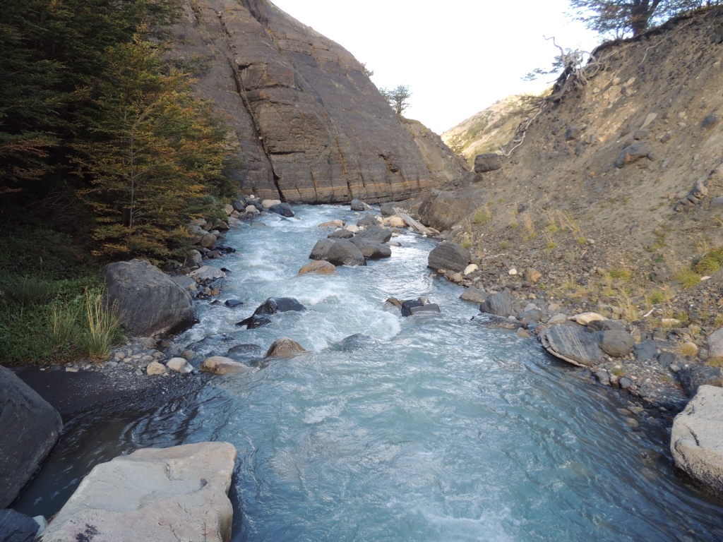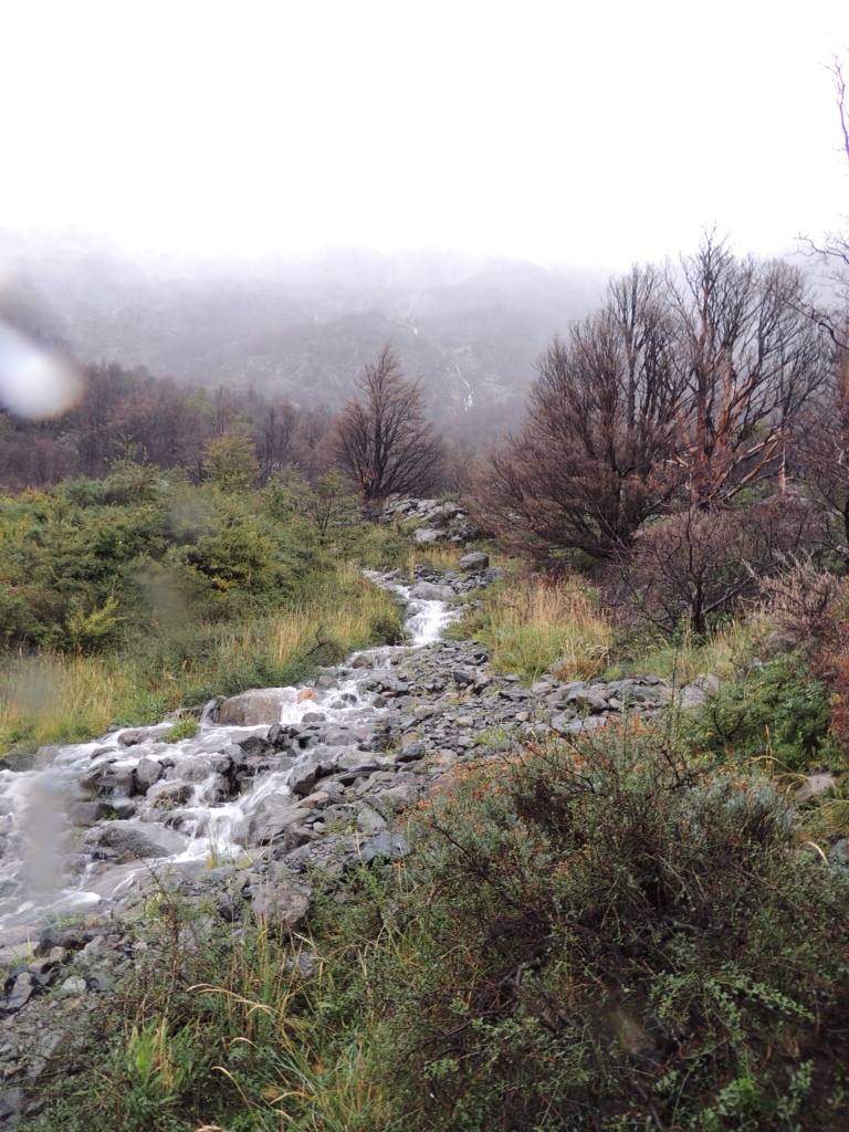 If it were not for the hot shower the next morning, I’m not sure how I would have got myself moving. After a huge breakfast of oatmeal, apple and coffee, also having disposed of our defunct tent, we shouldered our packs and set out onto the day’s trail. The weather remained horrendous all morning, with constant rain, sleet and gale force winds we battled against the Patagonian elements. Parts of the trail had become small streams, with torrents of ice cold rainwater cascading down from the surrounding mountains. The trail became particularly treacherous in places, with loose boulders and slippery stones creating ideal conditions for a sprained ankle or deadly fall.