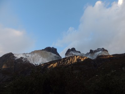 We were welcomed at the campsite by our entire group, who having not needed to walk the extra kilometres were already well into their dinner preparations. Freddy and Hugh had tossed their backpacks and were practically running to the mirador to see the Torres before sunset and our group had been joined by some new trekkers who had been turned around at the closed pass on the other side of the ‘O’ trek due to bad weather. Rice and whiskey had never tasted so good, as we whiled away the evening in the log shelter. Planning to witness the sunrise the next day we set our alarms early and headed for an early night. Thankfully, the tent lasted too.