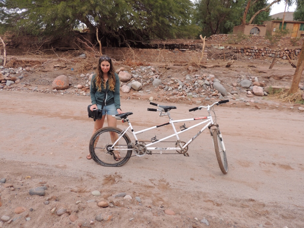 Thankfully, nobody wanted to steal a useless tandem bike so we parked it out the front and climbed the pre-Incan steps of the Pukara. The views of the town and surrounding desert were stunning, which I have become used to in beautiful Chile. The vast dry expanse was backed by snow-capped mountains and volcanoes, while the other mirador looked down into Death Valley. We were also treated to a close-up view of what remained of the Incan fortress that stood in place over 500 years ago. Thanks to another friendly pick-up truck driver, getting the bike back to town was much less difficult than it could have been and we were even spared another river crossing.