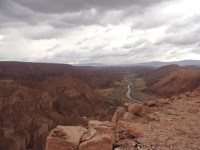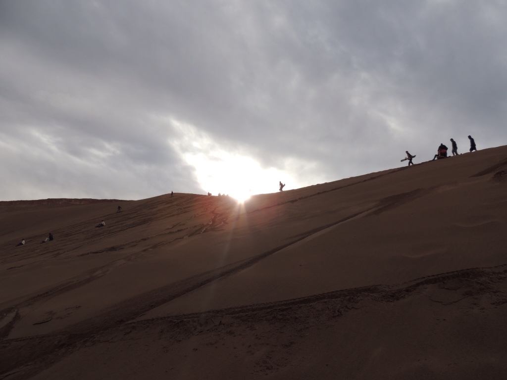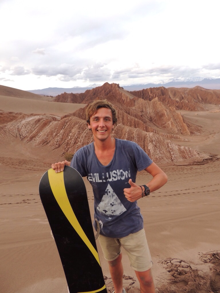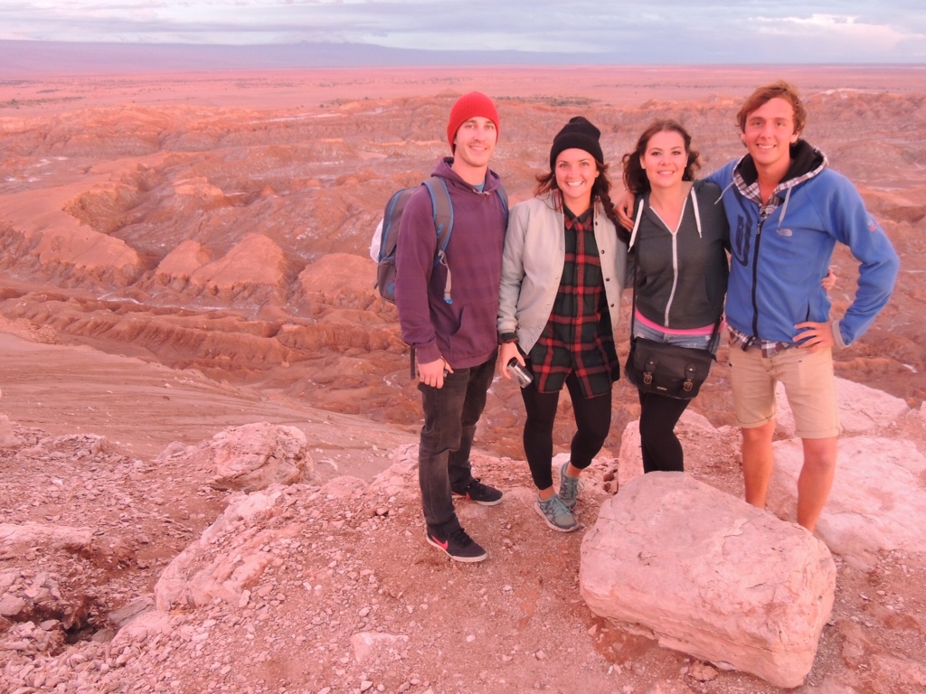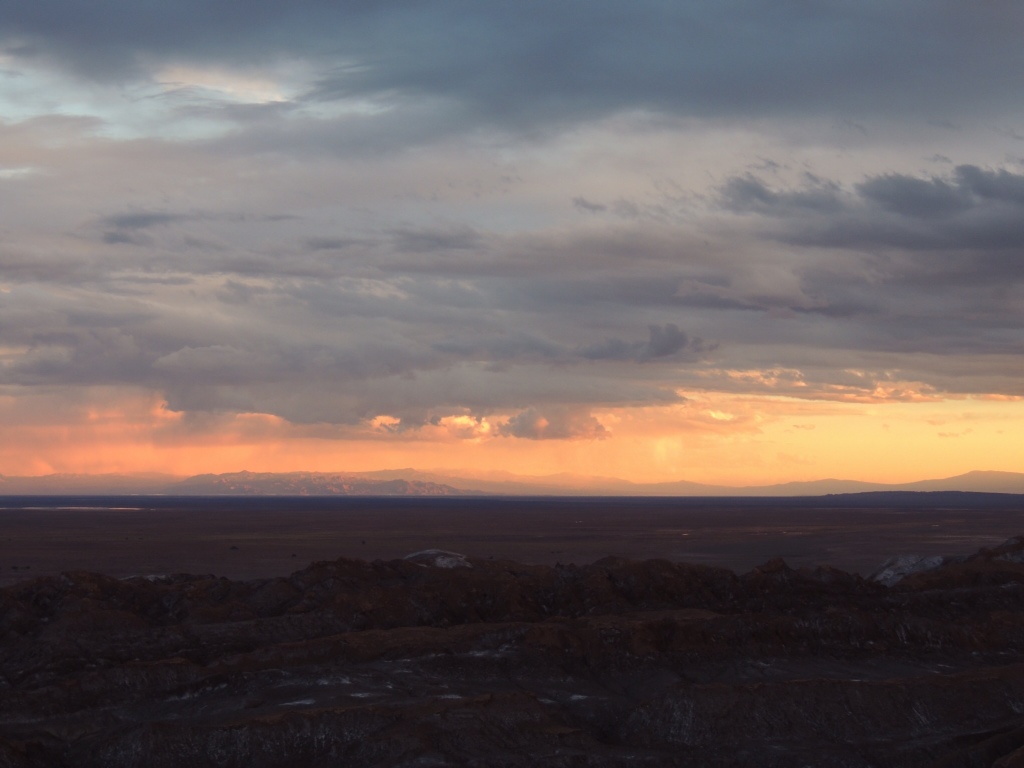 The small town's proximity to activities and sightseeing including salt lagunas, sand dunes and pre-Incan ruins make it a tourist hot-spot. The tours on offer are relatively fairly priced, and my small budget still stretched to an awesome afternoon of sandboarding, followed by a stunning sunset over the Valle de la Luna (Valley of the Moon), so named for its striking appearance dotted with craters and boulders. The small courtyard at Hostelling International made for a friendly atmosphere and it was easy to meet others quickly and get chatting. I met Kelsey (Canada), Renée (NZ) and Zoe (Ireland). With little to do in the pouring rain, we resolved to some $2 per litre wine tasting instead (unusual, I know). A sudden burst of enthusiasm came when the rain held off slightly, and we decided to walk out to the Pukara de Quitor pre-Incan ruins, just 3km from town. Just as we arrived, the ruins were closing and despite our best efforts we were chased off the premises by a rather angry Chilean with a loudspeaker. No sooner had we started the 3km walk back to town, the rain returned! Luckily our trip was made shorter, but not any less cold and wet, by a friendly man with a pick-up truck.
