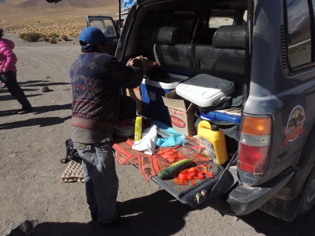 Our driver introduced himself as Edgar and explained that he would be our host for the next three days – driving the 4×4, explaining the sights, preparing our meals – you name it, he would be doing it. Little did we know that we would later come to know Edgar as Capitan Rapido, a name I bestowed on him after the first five hair-raising minutes of the capsule of speed that our four wheel-drive had become. As we hurtled along plains where roads didn't exist (but big rocks, potholes and Llamas certainly do) Edgar grinned madly as we brushed the sound-barrier and rolled over blind crests, praying that there would be no machine or animal on the other side.