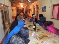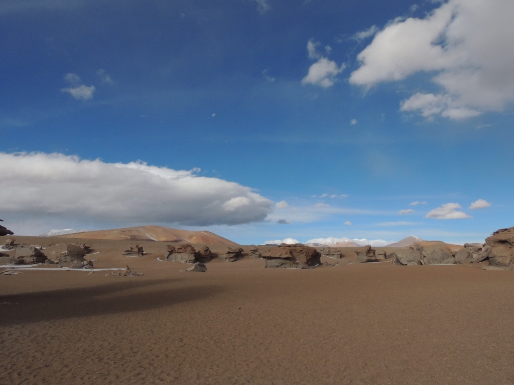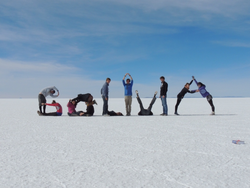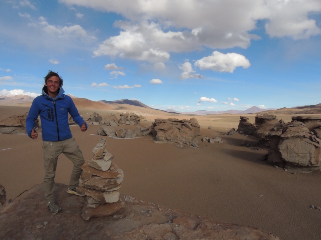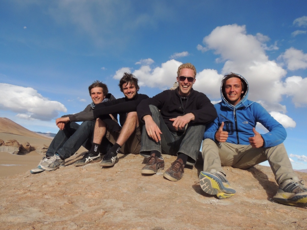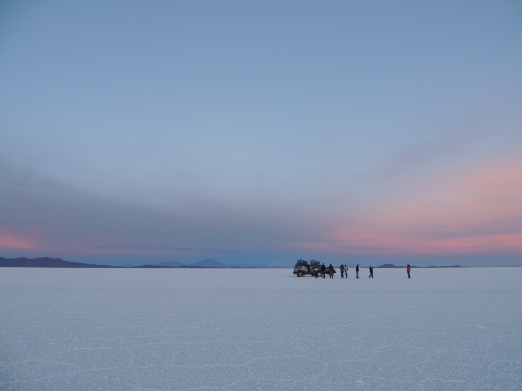 Tired from an early start followed by a day sightseeing, our group of 12 was reunited upon arrival at our first hostal, Huayllajara. Hundreds of kilometers from anywhere and isolated in the middle of the Bolivian desert we were denied the luxuries of Wifi or showers. Thankfully, a German surgeon called Jan encouraged us to warm up with a game of Charades, resulting in an evening of hilarity and inappropriateness. The altitude, combined with the fact that we were in the desert in a hostal with no wired electricity, made for a very cold night indeed. We woke up to a fine carpet of snow covering the sand and the sun stretching over the mountains on the horizon. Packed into our 4×4's we set off for Day 2 of the tour.