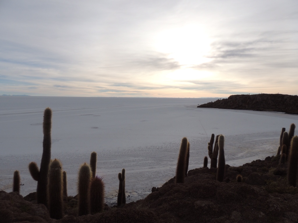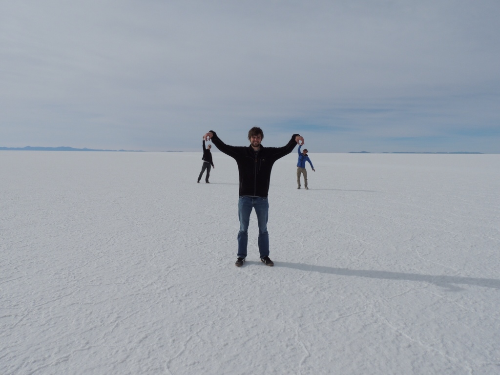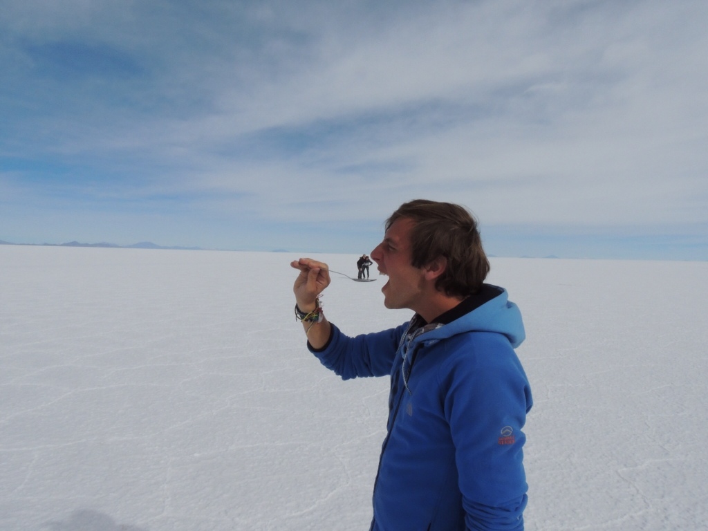 The Salt Flats of Uyuni or Salar De Uyuni is the largest Salt Lake in the world, covering over 10,000 square kilometers. Its formation is the result of the evaporation of several prehistoric lakes and it contains over 50% of the world's lithium reserves, which Bolivia is currently in the process of extracting. Our group spent an hour watching the sunrise before making our way to the Isla Incahuasi in the centre of the flats, dotted with cactuses up to 900 years old. Not only is the Salar an incredibly beautiful sight to behold, but its extraordinary flatness and pure white surface make it indistinguishable from the sky and clouds above. It is therefore perfect for taking photos with a play on perspective making objects and people look a lot bigger or smaller than they are. Making our way back out to the Salt Flats, the bright morning conditions were perfect for these photos and we spent a couple of hours making various ridiculous poses with different props. We reluctantly left the Salt Flats and after a brief stop at the eerie Cementario de Trenes we arrived in the small town of Uyuni.