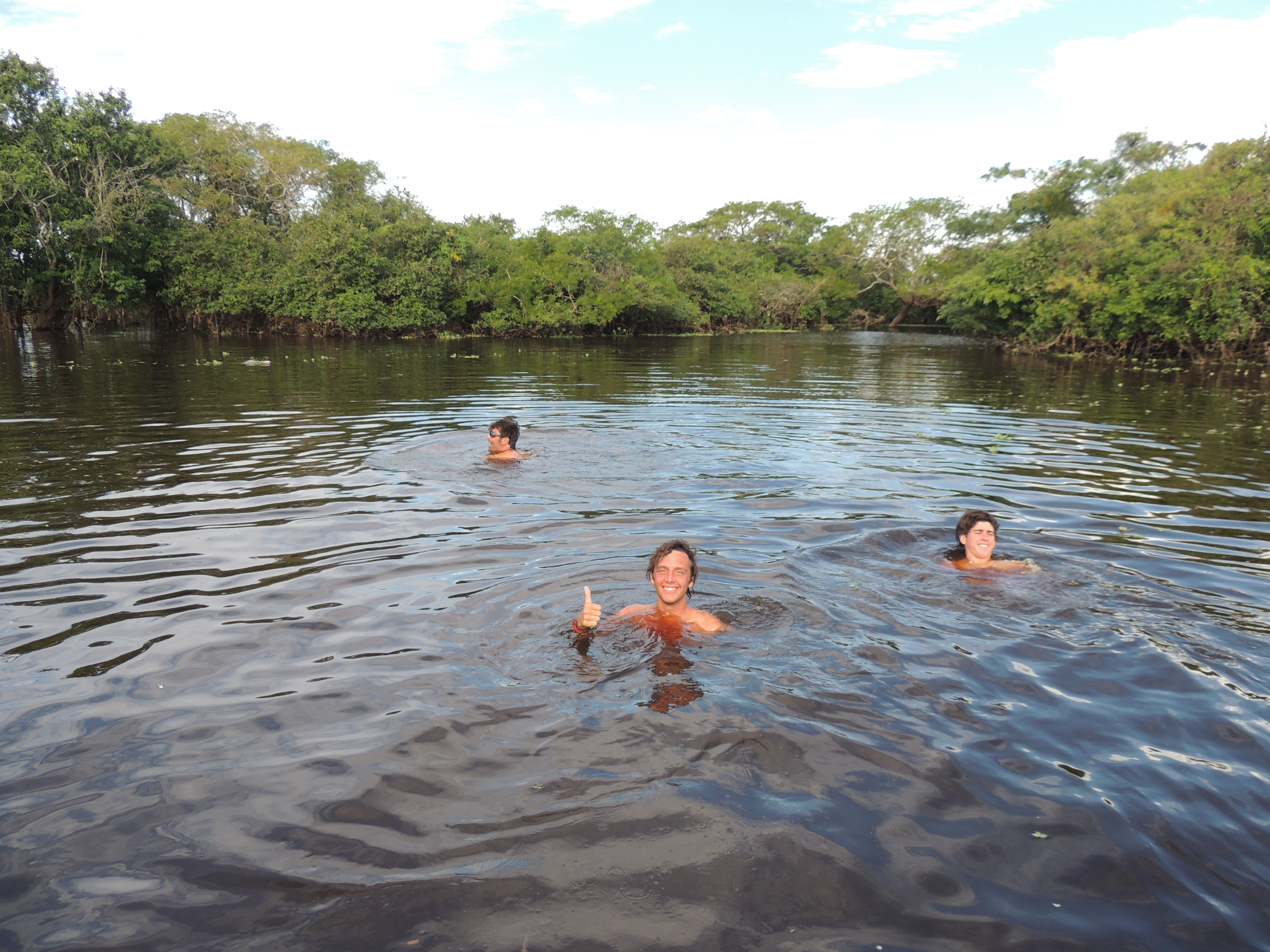 Theoverwhelming highlight of the trip for me was the opportunity to swim with Pink Amazon River Dolphins (too hard to photograph but you can check out a stock photo by clicking here). Aptly described by our friend Kyle as ‘the grey dolphin’s ugly cousin’, these freshwater dolphins are found throughout the Amazon river system of several South American countries. The murky brown water makes swimming with them a truly nerve-wracking experience, you don’t see them coming and they occasionally mistake you for something edible – as I found out the hard way!