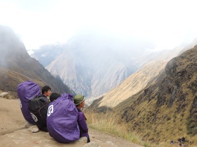 Porters take a rest after climbing to Dead Woman's Pass on Day Two of the historic Inca Trail.