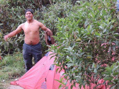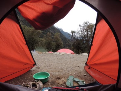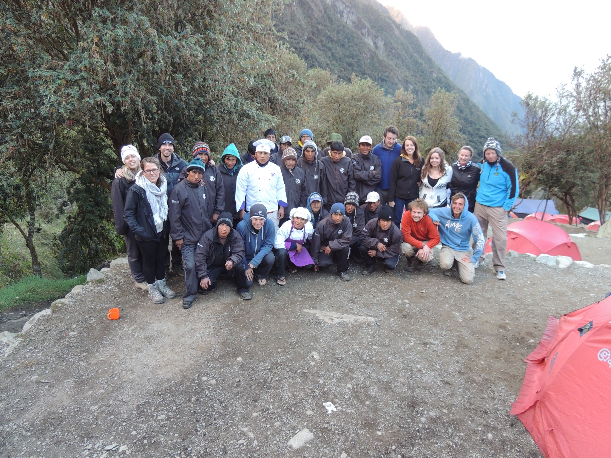 Marveling at the porters sprinting uphill ahead of us, each carrying cooking supplies, tents, our gear and their own (thus carrying up to 25kg in weight, each!), we set off on the first day of the trail. A steady 5-6 hours walking over 11km gave us more than enough time to stop at various ruins and eat the first of our daily 3-course meals – prepared by our 18-strong team of porters in time for us to walk in to camp. Meal times, strangely, were one of my favourite parts of the entire experience. Aside from the incredible food, it was a time when we got to know each other best and share jokes and laughs across the table. One other piece of excitement that day one of the trek brought was when a cheeky mountaineer from England, Richie, convinced me to stand on an almost impossible-to-reach rock in the middle of some raging rapids so he could 'take a brilliant photo!'. I needed the assistance of three fully grown men to get safely back to dry land and my right foot was wet for the rest of the trek.