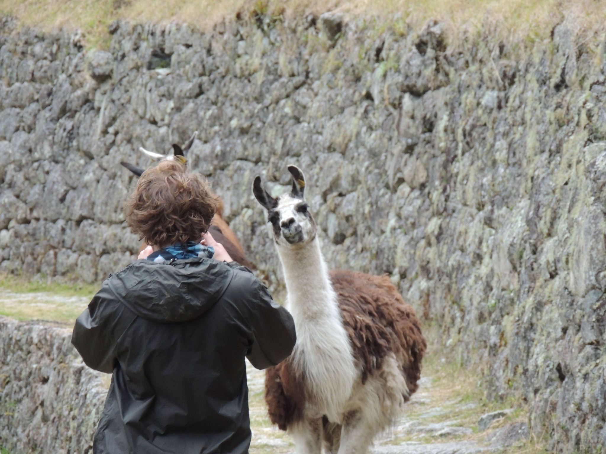 Two hours later, we rolled into dusty Pisac, the first stop on our tour of the Sacred Valley. The valley was a rich agricultural region for the Incas and is still an important source of food for the people in Cusco. I'd love to tell you all sorts of amazing cultural facts but you'll have to read them here. The most cultural thing that I managed to do was spend some time spooning a llama, clearly thinking that this would be the number one way to win over my new group. There was also some discussion between me and some local women about the prospect of marriage between me and a village girl. Before long, I was safely ensconced back on the shoulder of the girl I now knew to be Carly. Thankfully, my behaviour (and physical state) did improve during the day and I was able to appreciate our post-lunch stop in the town where we would be sleeping, Ollantaytambo. Our first glimpse at examples of Incan agricultural engineering did not disappoint, with the evidence of ancient terraces, homes and buildings an immense presence over the humble modern town which also provided our stay for the night. There would be no late excuses the following day, as we had a short early morning bus ride to the entry checkpoint and the start of the trail itself.