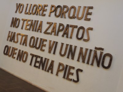 ‘I cried because I had no shoes, until I saw that the child had no feet’, moving artwork from La Capilla del Hombre, Casa de Guayasamin, Quito, Ecuador.