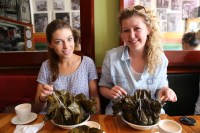 A philosophical, guitar-cradling Venezuelan guy (there’s one in every hostel) told us at length about his experiences with hallucinogenic Amazonian medicines, before absoutely insisting that we try Ajiaco, a delicious, thick, Colombian soup made with four different types of potato, corn, chicken and served with capers, sour cream and a spice called guasca, giving it a unique flavour. It took myself and the Aussies some searching, but it was well worth the 16,000CLP ($8AUD) price tag. Other, cheaper local eats included deep-fried empanadas, available on almost every street after 1pm with more sauces than flavours of filling, and Obleas, my favourite Colombian sweet: thin tortilla-sized waffle style wafers typically served with arequipe, chocolate, cheese and mora (raspberry jam).