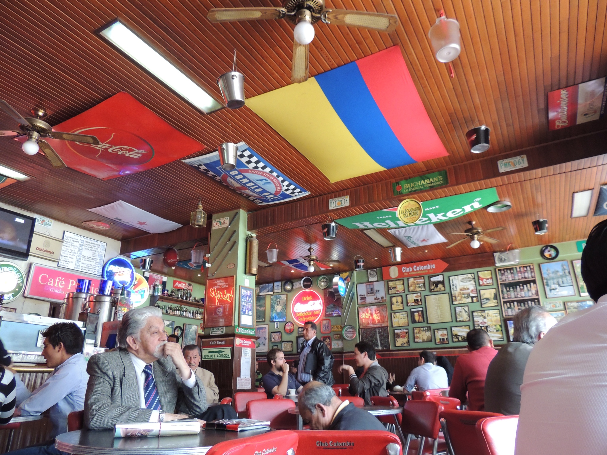 So, how did we break up a few days in Bogotá? We began with a simple but effective backpacker plan: structure each of your days around food. My Footprint Handbook (insert another bible reference here) kindly solved a couple of searches for us, while we took recommendations from people around the hostel on what to stuff ourselves with next. I was pretty eager to test a theory put to me by a Colombian Couchsurfing friend from Cordoba who had told me that Colombians dunk their cheese into their hot chocolate, stir it around and then just, well, slurp it up. Panadería Florida (Cra. 7 No. 21-46) was one of those places that makes you feel homeless as a 9-month old backpacker, but I braved the public scrutiny of my facial scruff and it was worth every peso. Definitely the place to try chocolate santafereño.